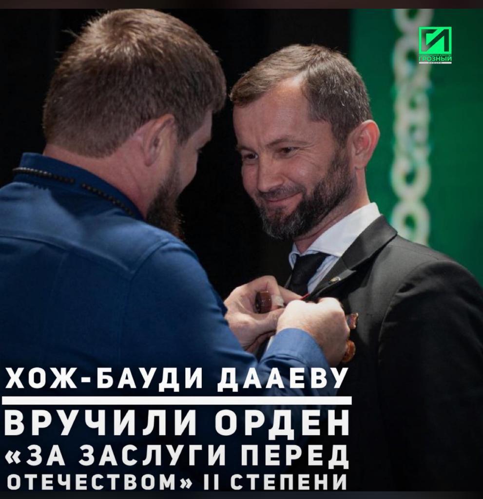 20.08.2022Глава Чеченской Республики Рамзан Кадыров на Августовской конференции педагогических работников региона передал Хож-Бауди Дааеву медаль ордена «За заслуги перед Отечеством» II степени, которой его ранее наградил Президент России Владимир Путин. Уважаемый,Хож-Бауди Буарович, Вы прилагаете огромные усилия, чтобы образование и наука динамично развивались, являясь фундаментом величия и процветания нашей Родины.
