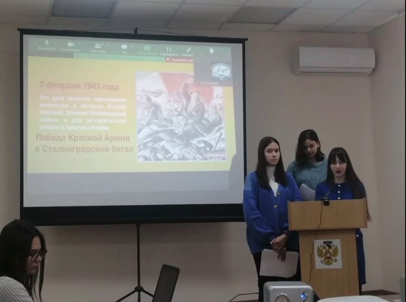03.02.20232 февраля прошла межрегиональная студенческая научно-практическая конференция на тему «Роль государства и общества в процессе сохранения, передачи и трансформации исторической памяти: факты и события прошлого», организованная Ростовским финансово-экономическим колледжем ФГБОУ ВО «РГЭУ (РИНХ).С исследовательской работой «Герои истории – проводники в нашей жизни» достойное участие в конференции приняли студенты ГБПОУ «ЧГПК» Абдулкадырова Мата, Зайпулаева Лиана, Хаджиева Лимда (специальность 44.02.02 Преподавание в начальных классах). Опыт взаимодействия образовательных учреждений регионов был положительным и нацелен на дальнейшую перспективу.