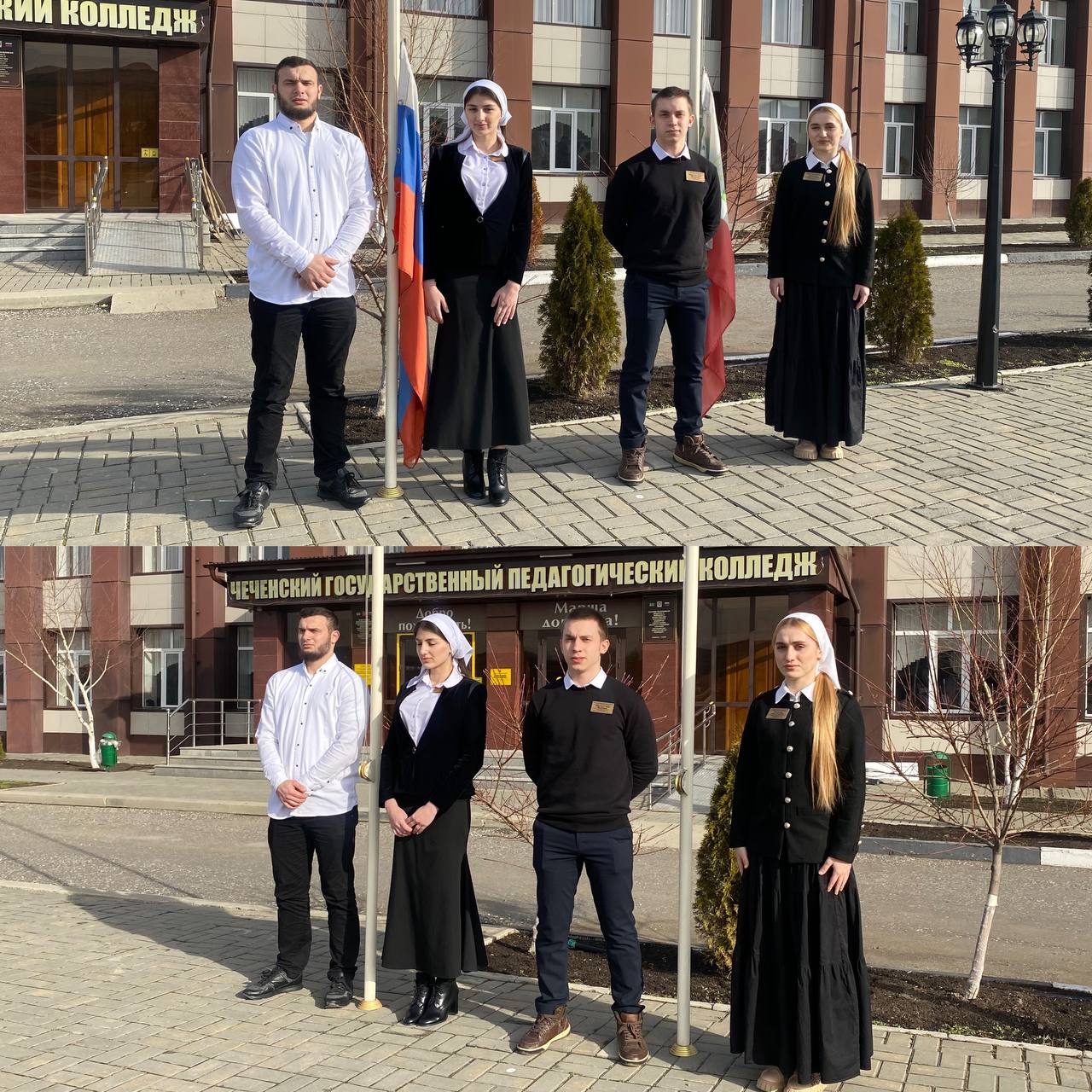 27.02.202327.02.2023г. Как и в каждый понедельник учебная неделя в ГБПОУ «Чеченский государственный педагогический колледж» началась с торжественной линейки поднятия государственных флагов Российской Федерации и Чеченской Республики. На линейке студентам были вручены сертификаты федерального проекта «Просто Действуй». С пожеланием всем удачной недели студенты разошлись на кураторский час «Разговоры о важном».