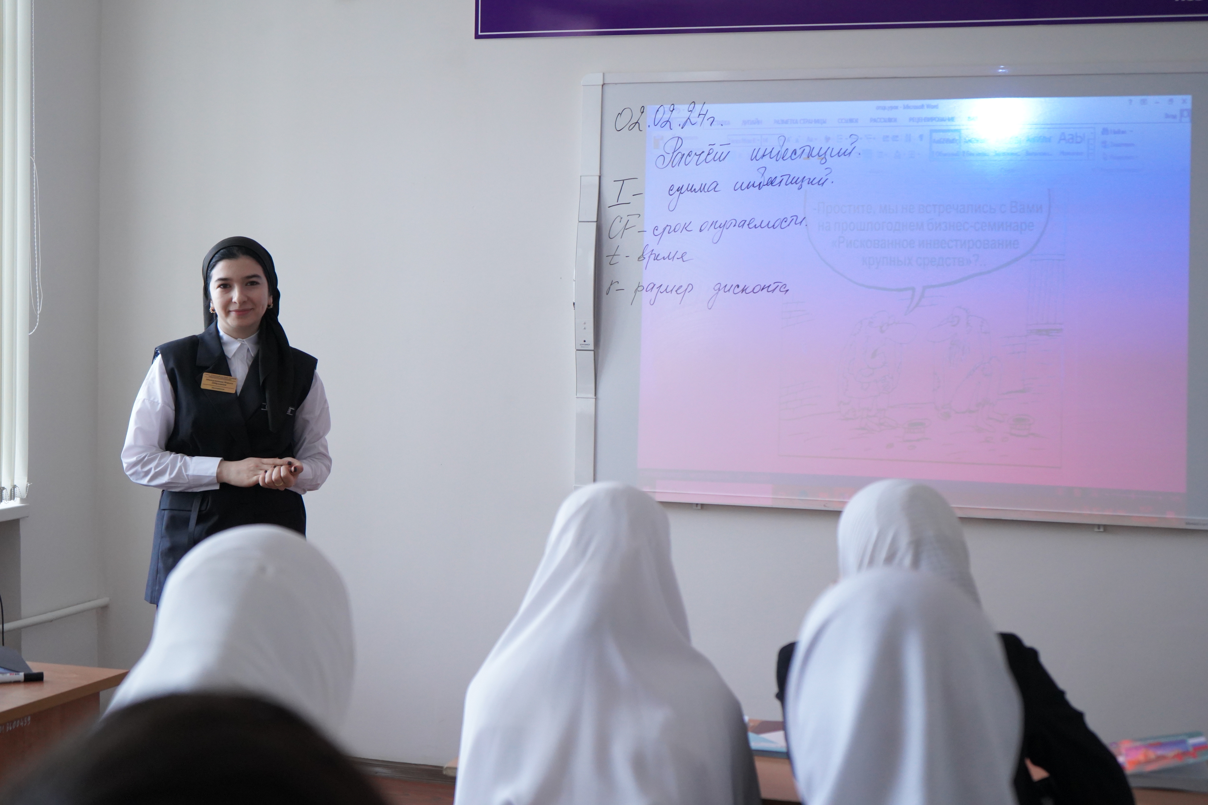 02.02.2024Открытый урок на тему Расчет инвестиций» провела преподаватель экономических дисциплин Чеченского государственного педагогического колледжа Эдилсултанова Марьям Абдуллаевна с участием обучающихся ЧГПК.