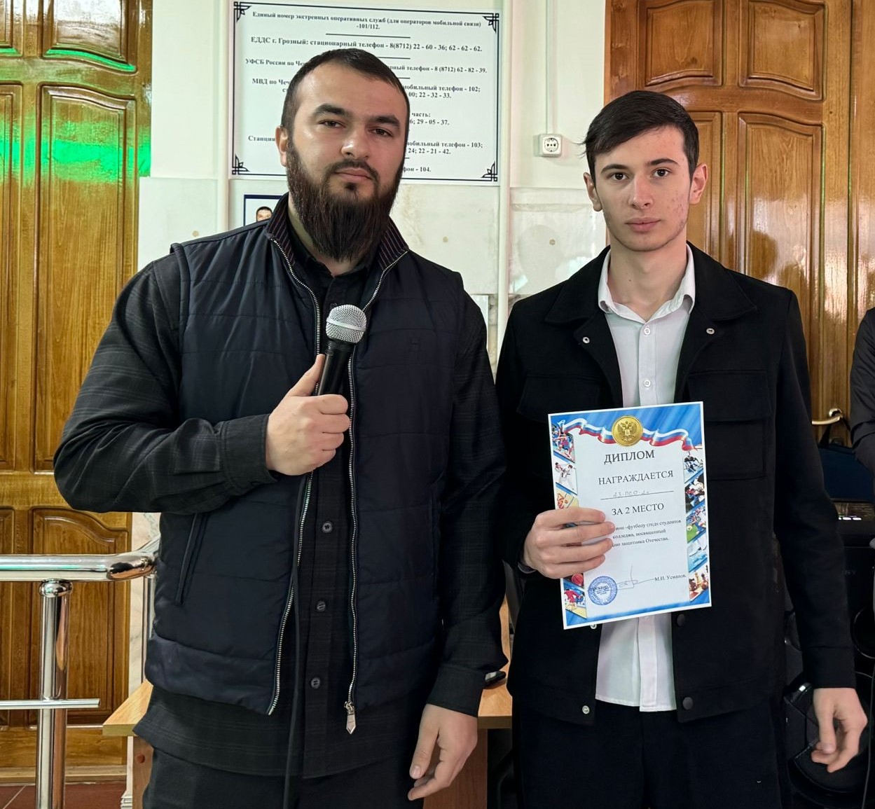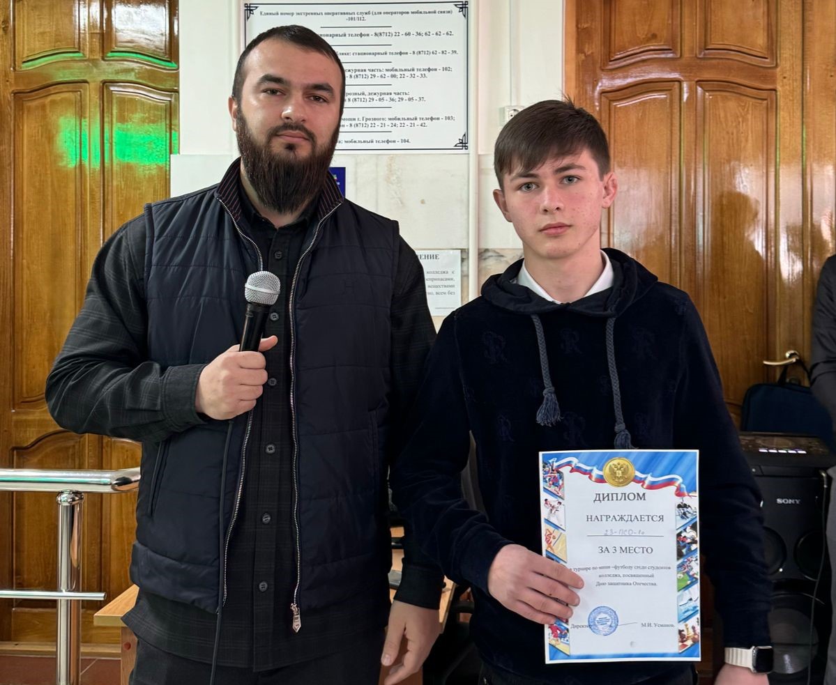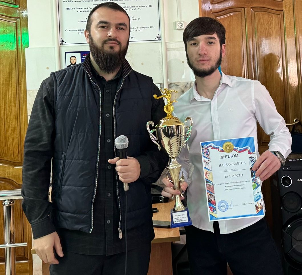 В ходе данного мероприятия заместитель директора по воспитательной и социальной работе ЧГПК Шейх-Мансур Атухаджиев также вручил кубок и грамоты победителям недавних состязаний по мини-футболу, посвященных ко Дню защитника Отечества.