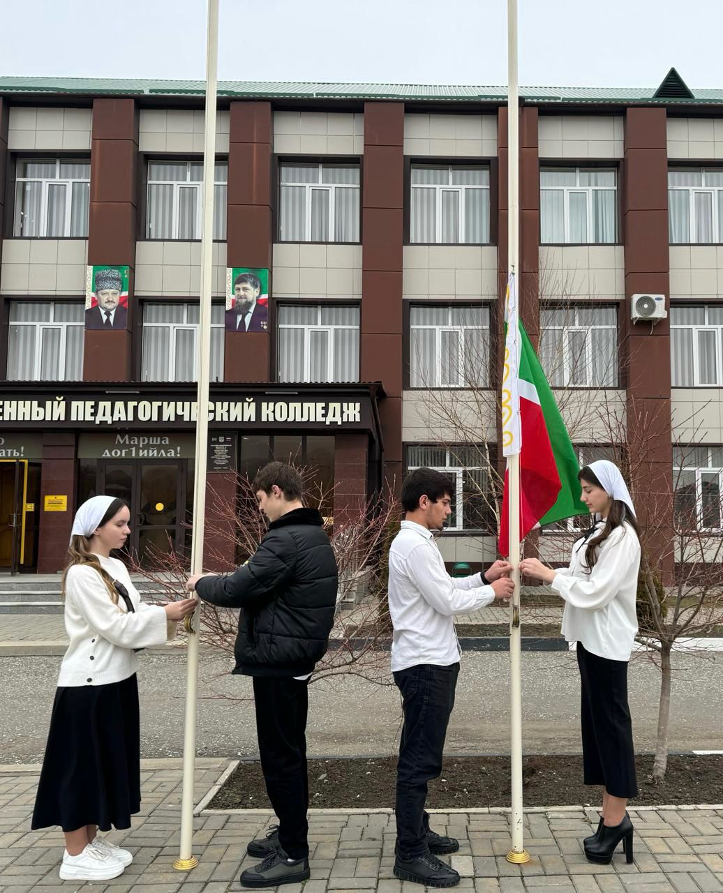 04.03.2024Учебная неделя в Чеченском государственном педагогическом колледже началось с поднятием государственных флагов Российской Федерации и Чеченской Республики и награждением лучших обучающихся.