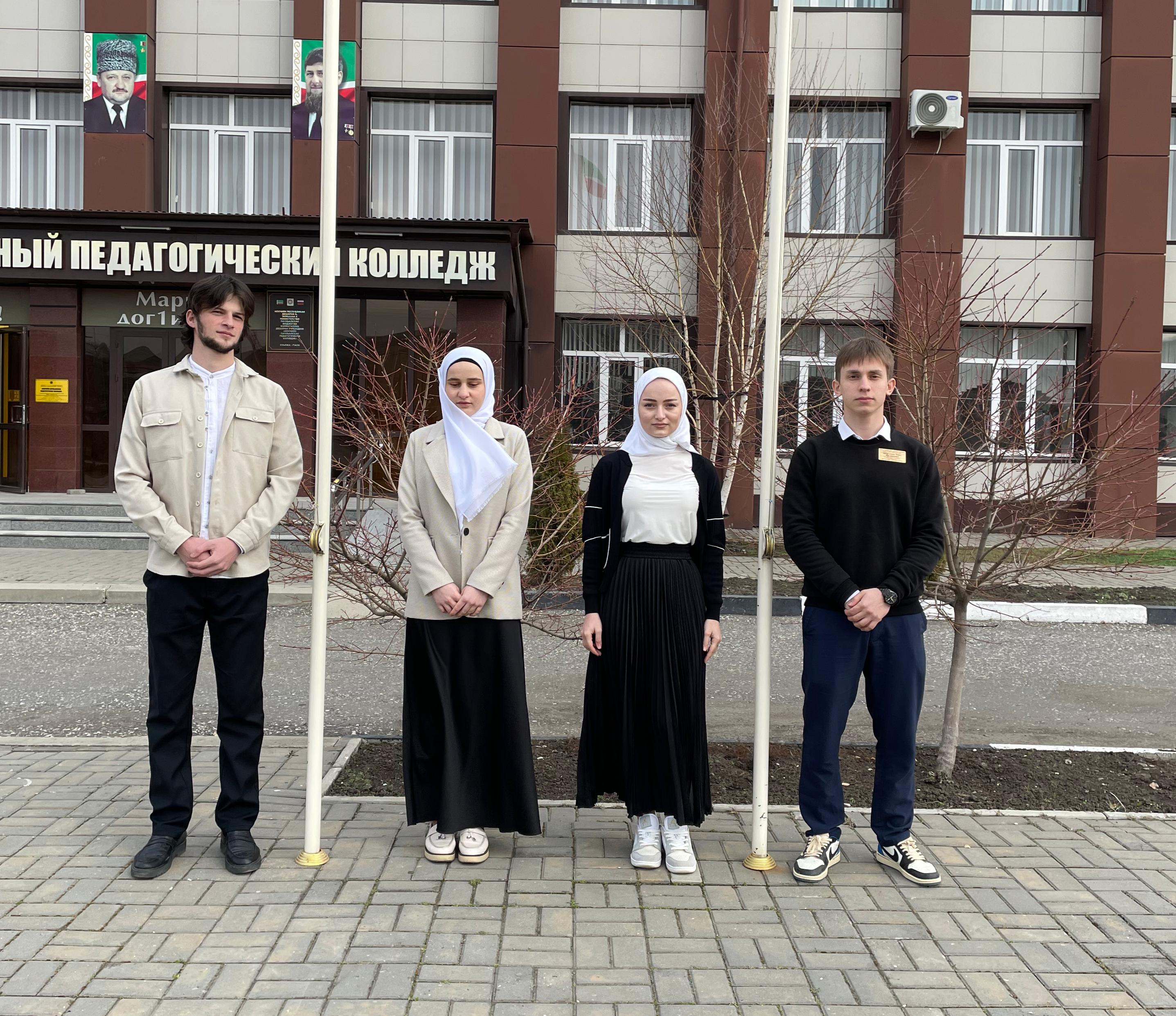 Традиционно перед началом учебной недели студенты ЧГПК приняли участие в церемонии поднятия государственных флагов Российской Федерации и Чеченской Республики.