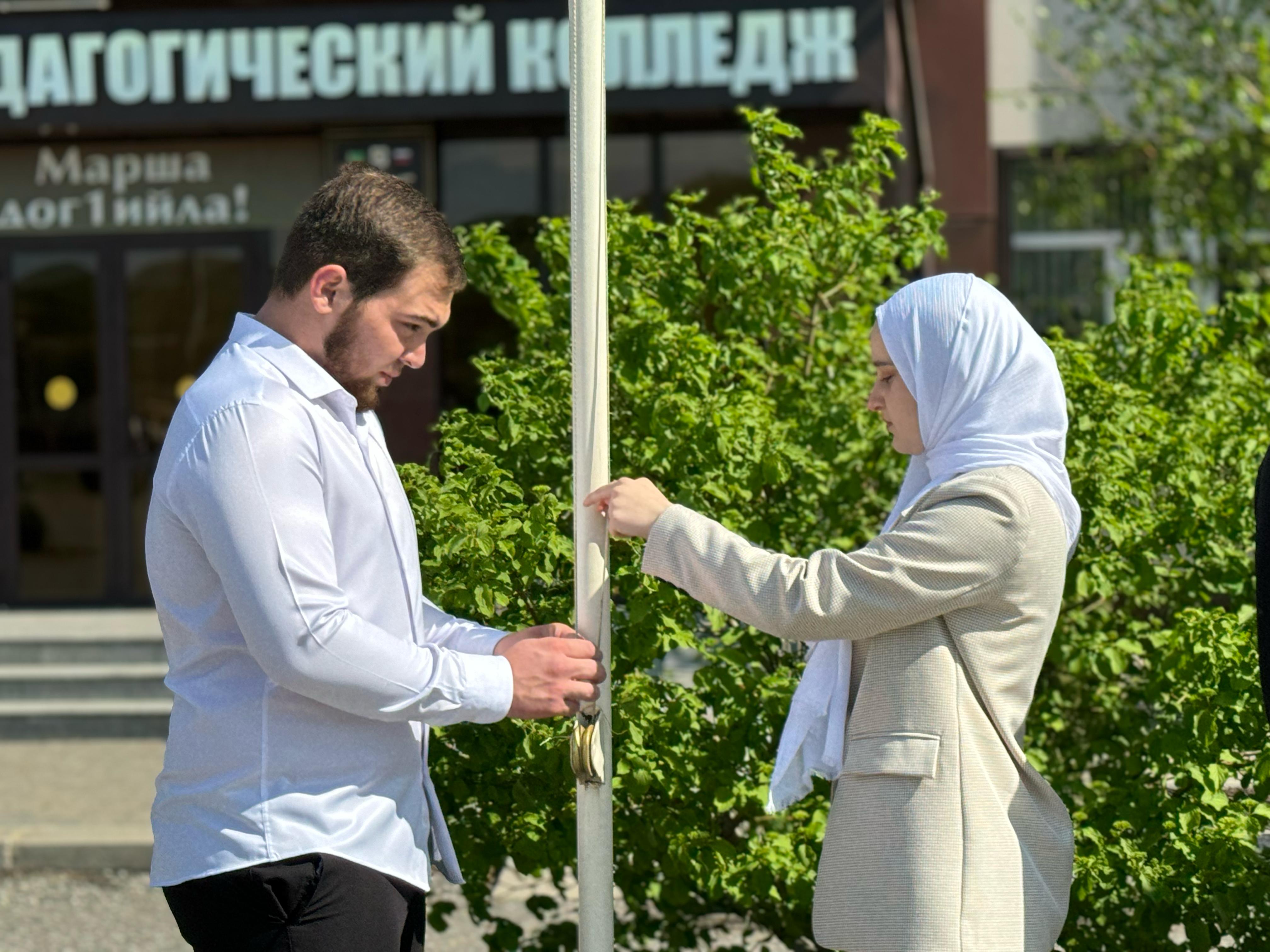 22.04.2024Учебная неделя в Чеченском государственном педагогическом колледже традиционно началась торжественной линейкой и церемонией поднятия государственных флагов Российской Федерации и Чеченской Республики.