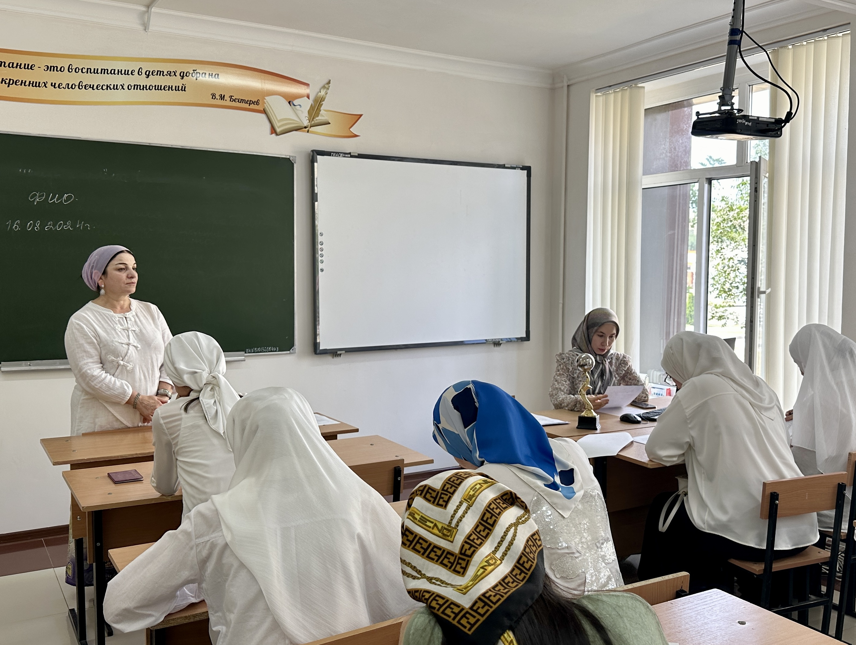 16.08.2024Сегодня, 16 августа 2024г. в ГБПОУ «Чеченский государственный педагогический колледж» завершился второй день проведения вступительных экзаменов. Вступительные испытания в форме психологического тестирования прошли абитуриенты по следующим специальностям: 49.02.01 – «Физическая культура», 44.02.01 – «Дошкольное образование» и 44.02.02 – «Преподавание в начальных классах».