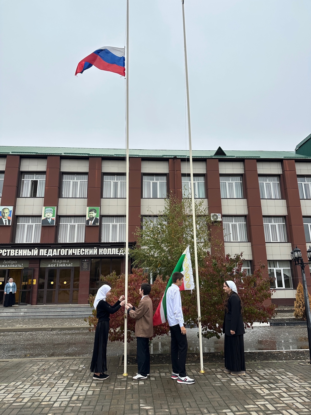 УЧЕБНАЯ НЕДЕЛЯ В ЧЕЧЕНСКОМ ГОСУДАРСТВЕННОМ ПЕДАГОГИЧЕСКОМ КОЛЛЕДЖЕ ТРАДИЦИОННО НАЧАЛАСЬ С ТОРЖЕСТВЕННОЙ ЦЕРЕМОНИИ ПОДНЯТИЯ ГОСУДАРСТВЕННЫХ ФЛАГОВ ПОД ГИМНЫ РОССИЙСКОЙ ФЕДЕРАЦИИ И ЧЕЧЕНСКОЙ РЕСПУБЛИКИ