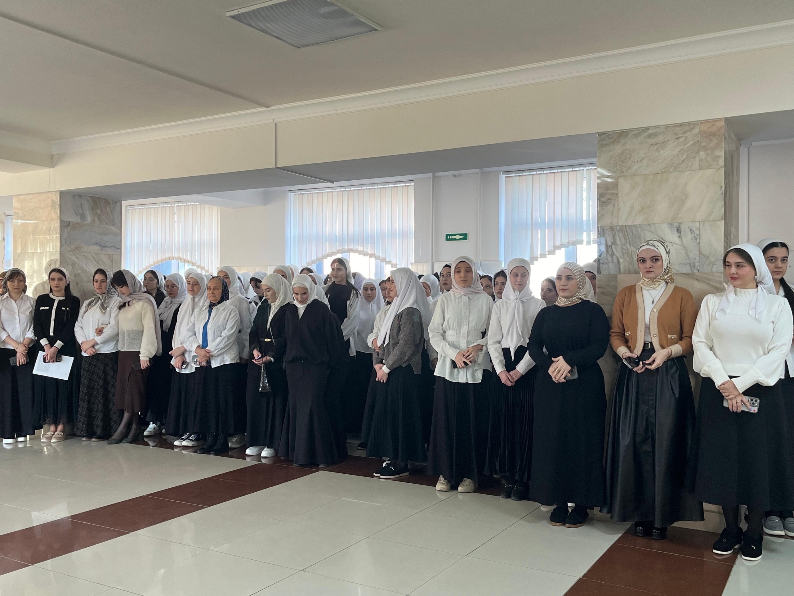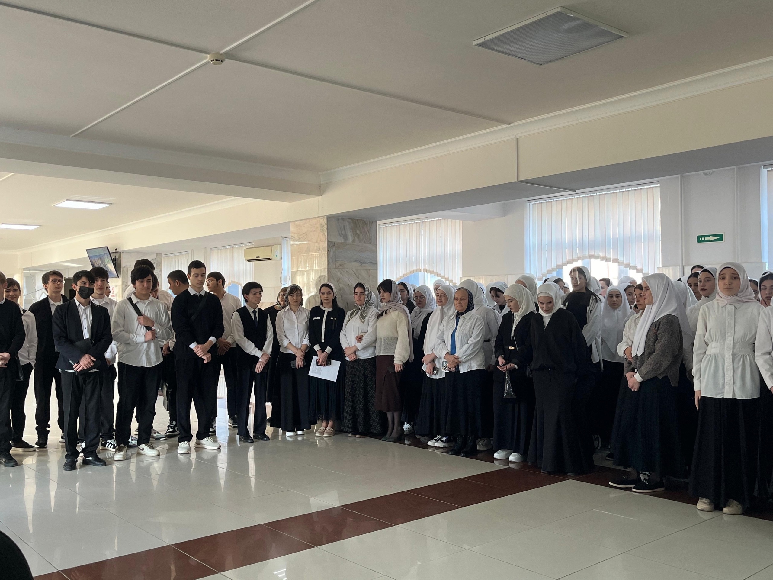 18.11.2024Утро понедельника в Чеченском государственном педагогическом колледже традиционно началось с торжественной линейки, церемонии поднятия государственных флагов и исполнения гимнов Российской Федерации и Чеченской Республики.