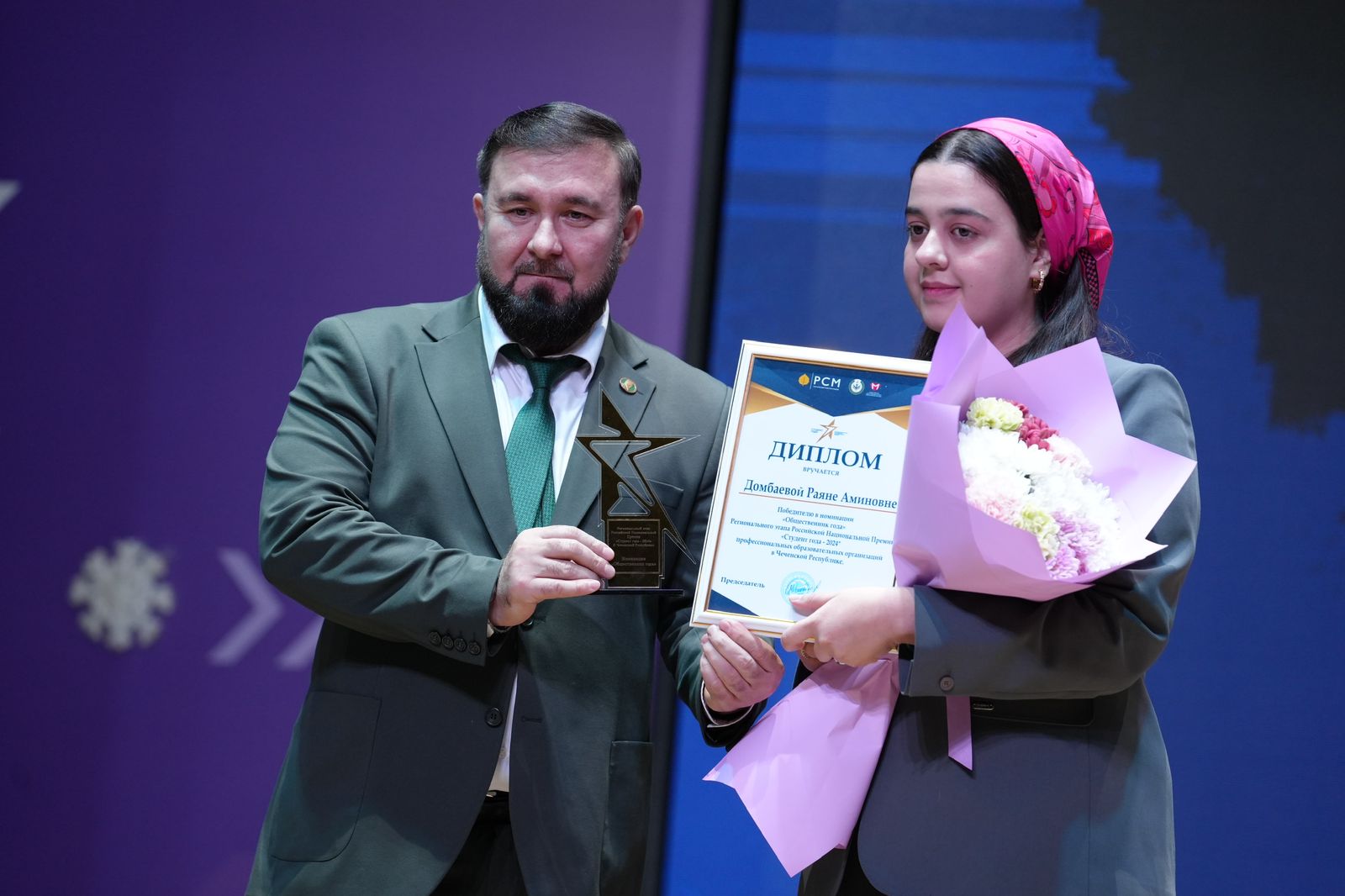 Обучающаяся четвертого курса по специальности «Преподавание в начальных классах» Чеченского государственного педагогического колледжа, Домбаева Раяна Аминовна стала победителем номинации «Общественник года» регионального этапа Российской национальный премии «Студент года - 2024», которая проводилась среди профессиональных образовательных организаций Чеченской Республики. Диплом победителя Раяне Домбаевой вручил уполномоченный по правам человека в ЧР Мансур Солтаев.