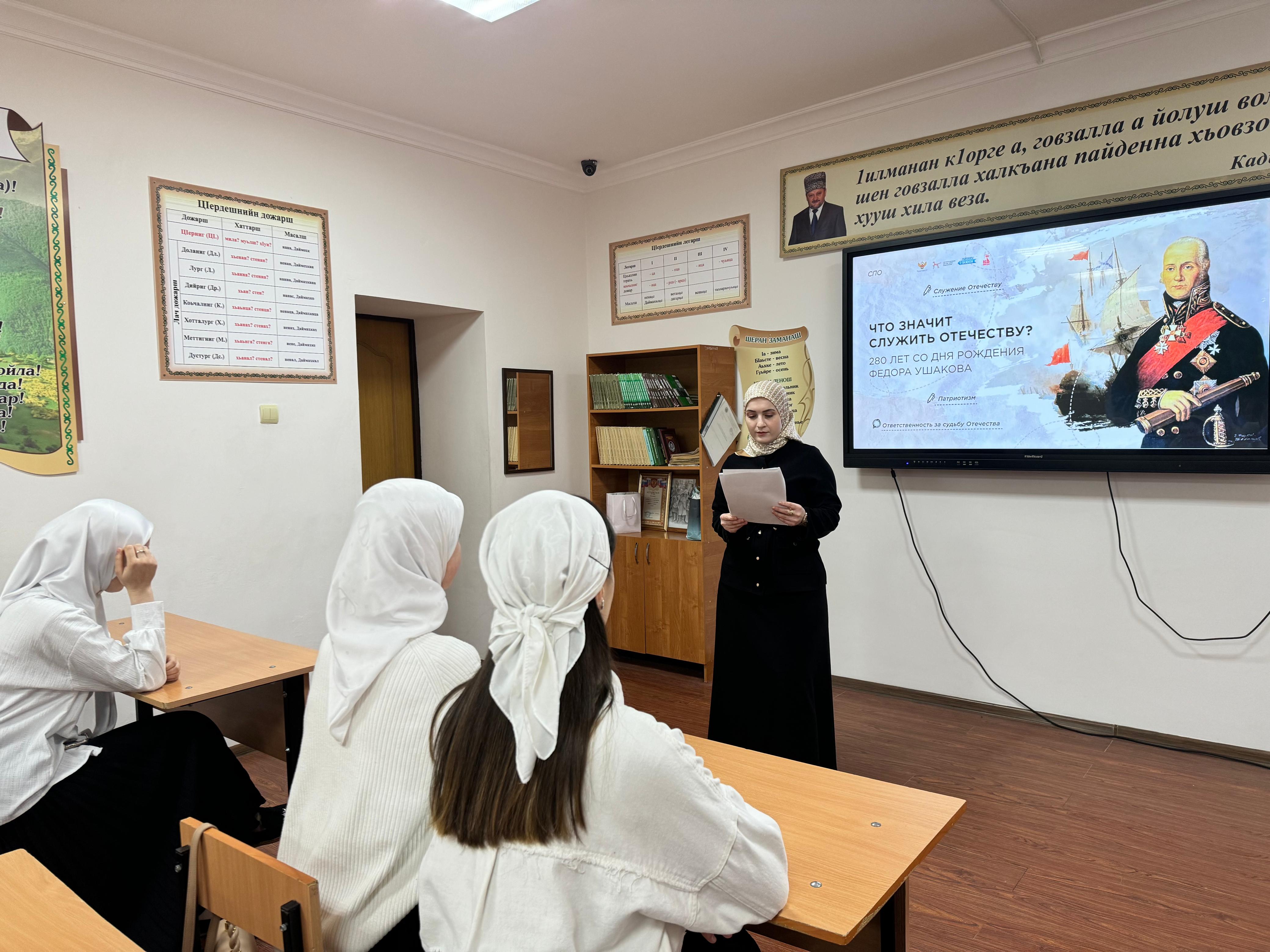 Внеурочные занятия – кураторские часы прошли о в преддверии 280-летия со дня рождения выдающегося российского флотоводца Федора Ушакова. Знаменательная дата отмечается 24 февраля. А за день до этого в России будут праздновать День защитника Отечества. Именно о преданном служении Отечеству и ответственности за судьбу Родины поговорили с обучающимися на занятии «Что значит служить Отечеству».