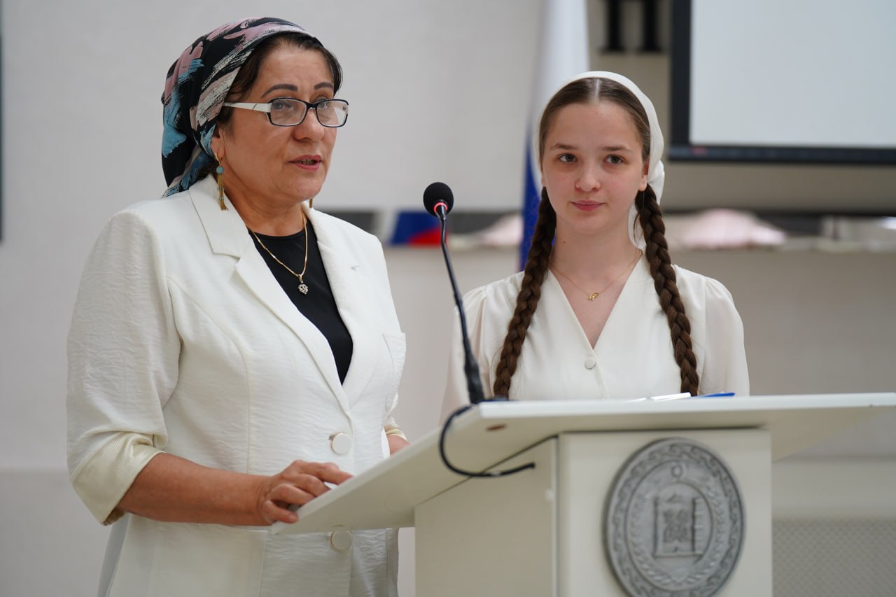 С докладом на тему «Героизм не знает национальных границ. Диалог поколений» выступили заслуженный учитель ЧР, почётный работник просвещения РФ, заместитель директора ЧГПК Зулихан Астамирова и студентка первого курса Индира Кулаева.