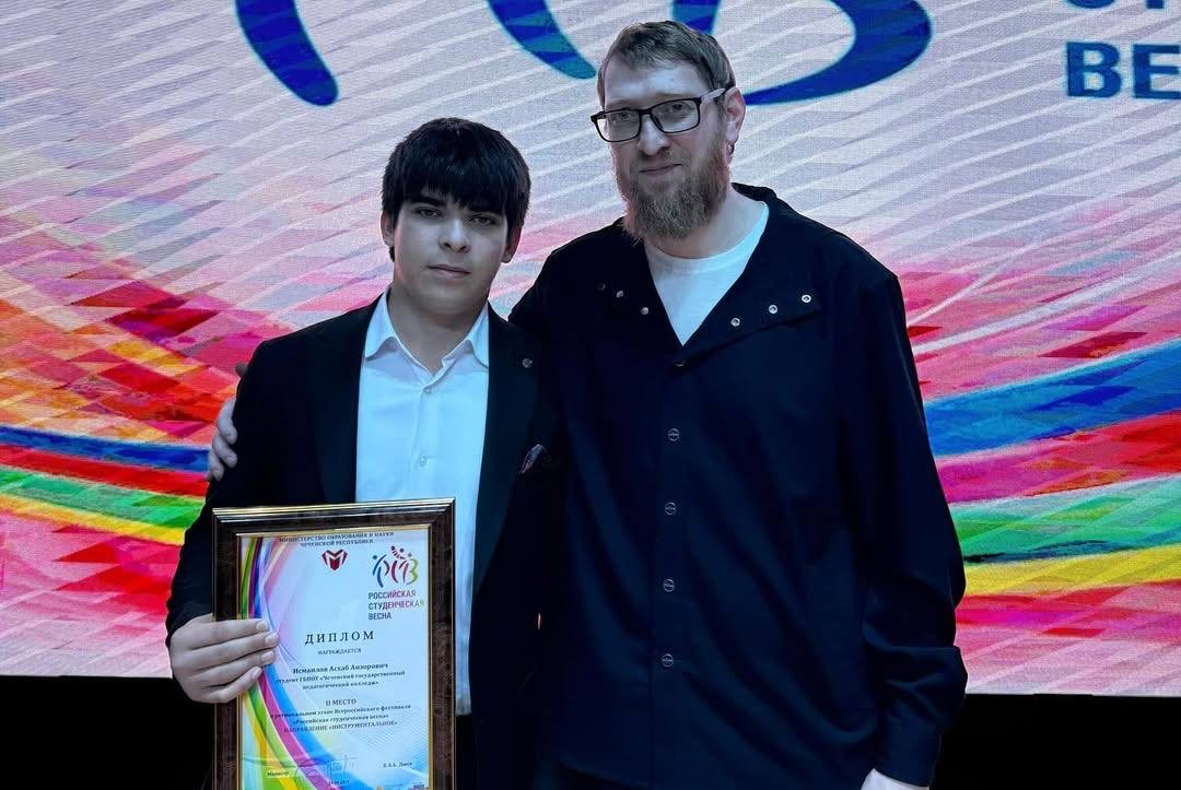 31.05.2025Обучающийся первого курса группы «24-ЮР 1-з» Чеченского государственного педагогического колледжа Асхаб Исмаилов занял почётное второе место в региональном этапе Всероссийского фестиваля «Студенческая весна», в номинации «Инструментальное исполнение»!