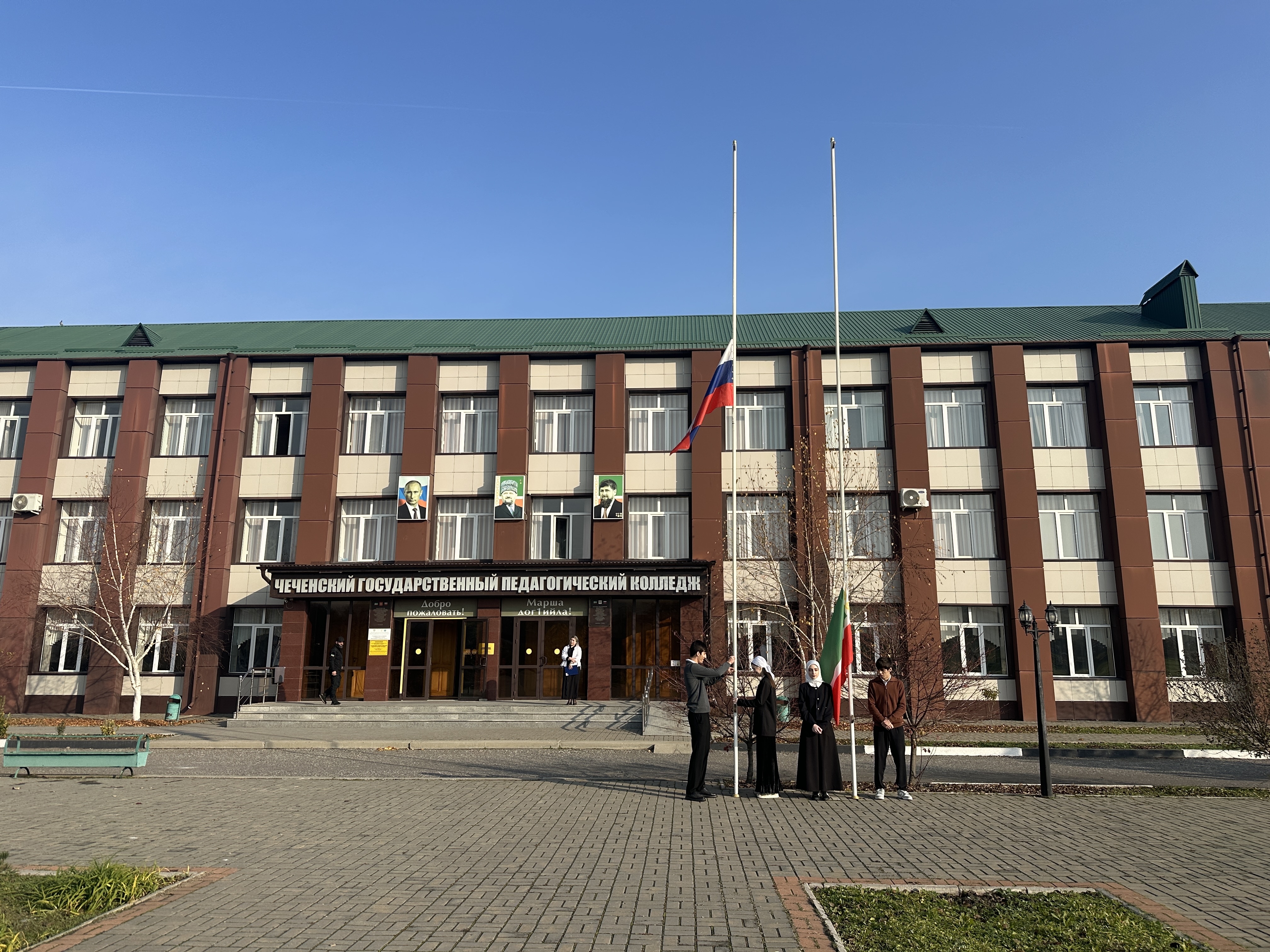Новая учебная неделя в Чеченском государственном педагогическом колледже традиционно началась с торжественной церемонии поднятия государственных флагов. В мероприятии приняли участие студенты и педагоги образовательной организации СПО.