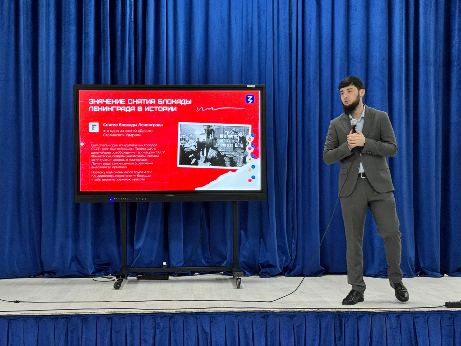 В ходе занятия Ислам Зайндиевич рассказал о невероятной стойкости, мужестве и силе духа ленинградцев, которые ценой неимоверных лишений и потерь смогли выстоять против врага. Лекция напомнила собравшимся о том, как советский народ, объединенный общей бедой и целью, смог одержать победу в одном из самых тяжелых эпизодов Великой Отечественной войны.