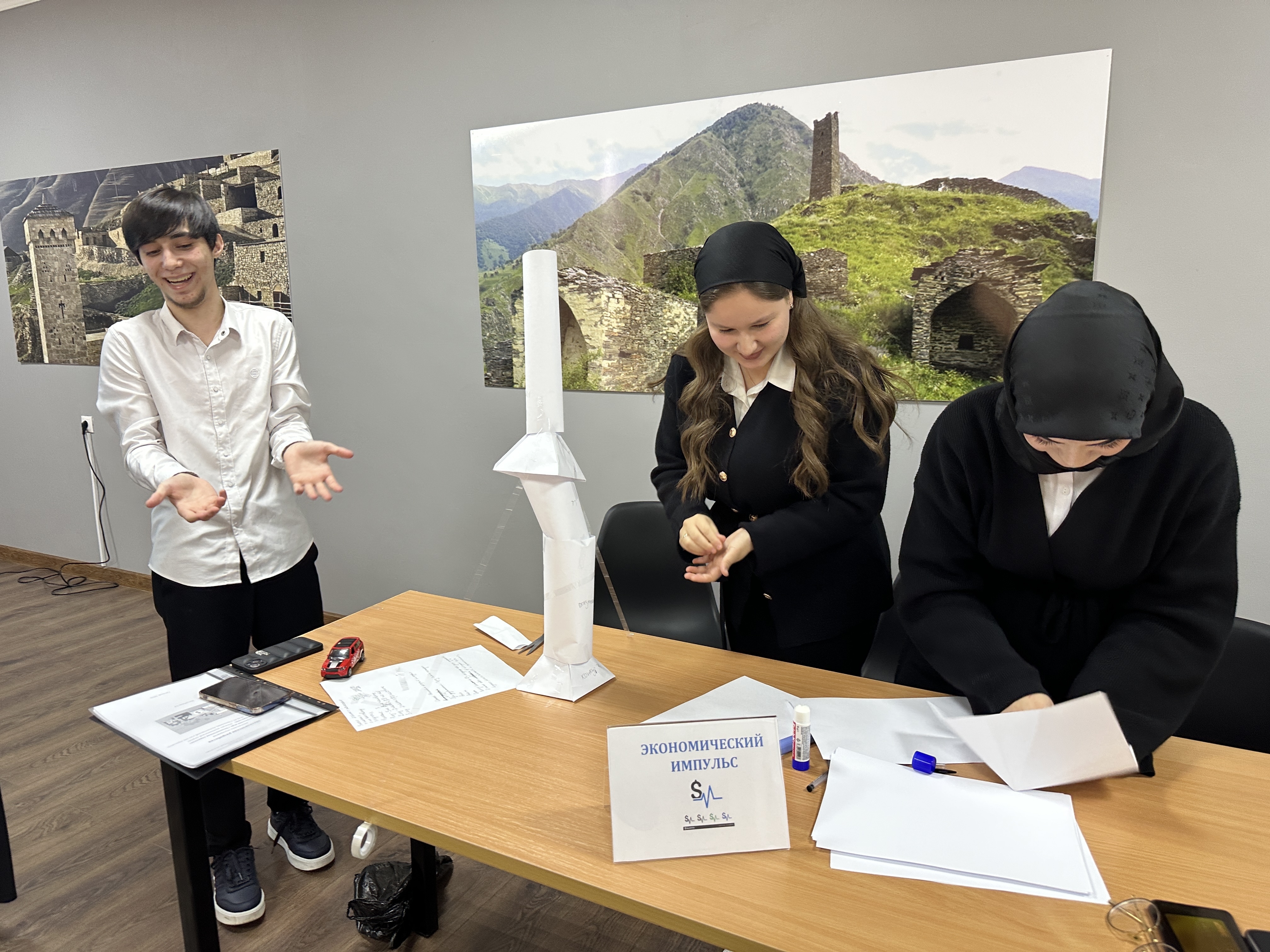 В заключительном туре командам предстояло построить «экономическую пирамиду». Участники создавали башню из подручных материалов, где каждый уровень символизировал экономическое понятие. Команды объясняли, почему без этих элементов «экономика» не устоит.