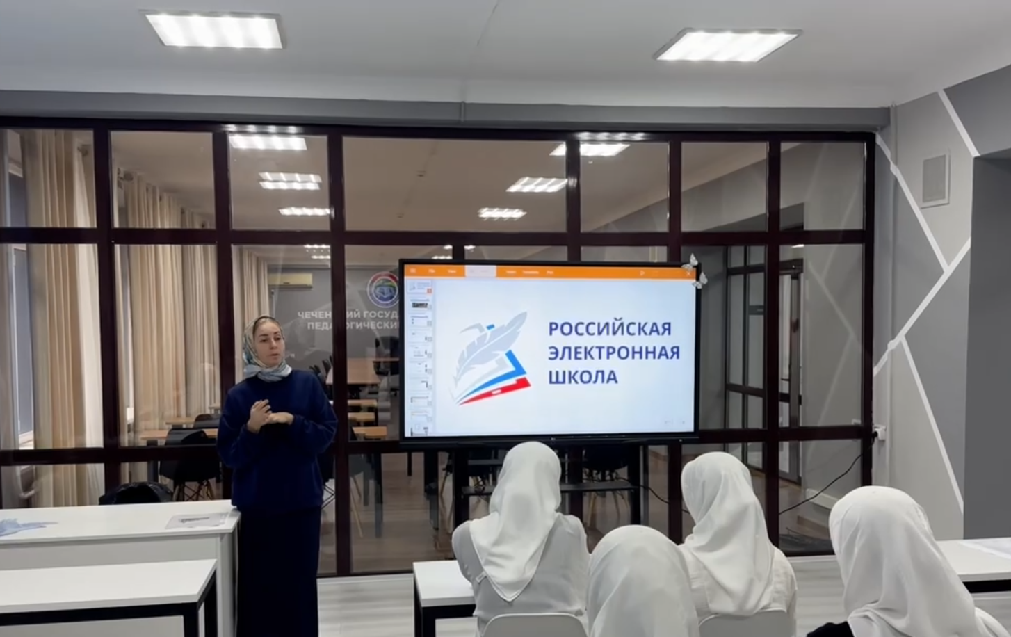 Провела занятие приглашенный эксперт — Халидова Айшат Шахруддиновна, заместитель директора по учебной работе МБОУ «СОШ №21» г. Грозного. Будучи практикующим руководителем и педагогом, она поделилась со студентами актуальным опытом использования платформы в реальном учебном процессе. Участники мероприятия узнали о том, как эффективно интегрировать интерактивные уроки, видеоматериалы и тестовые задания РЭШ в преподавание различных предметов.