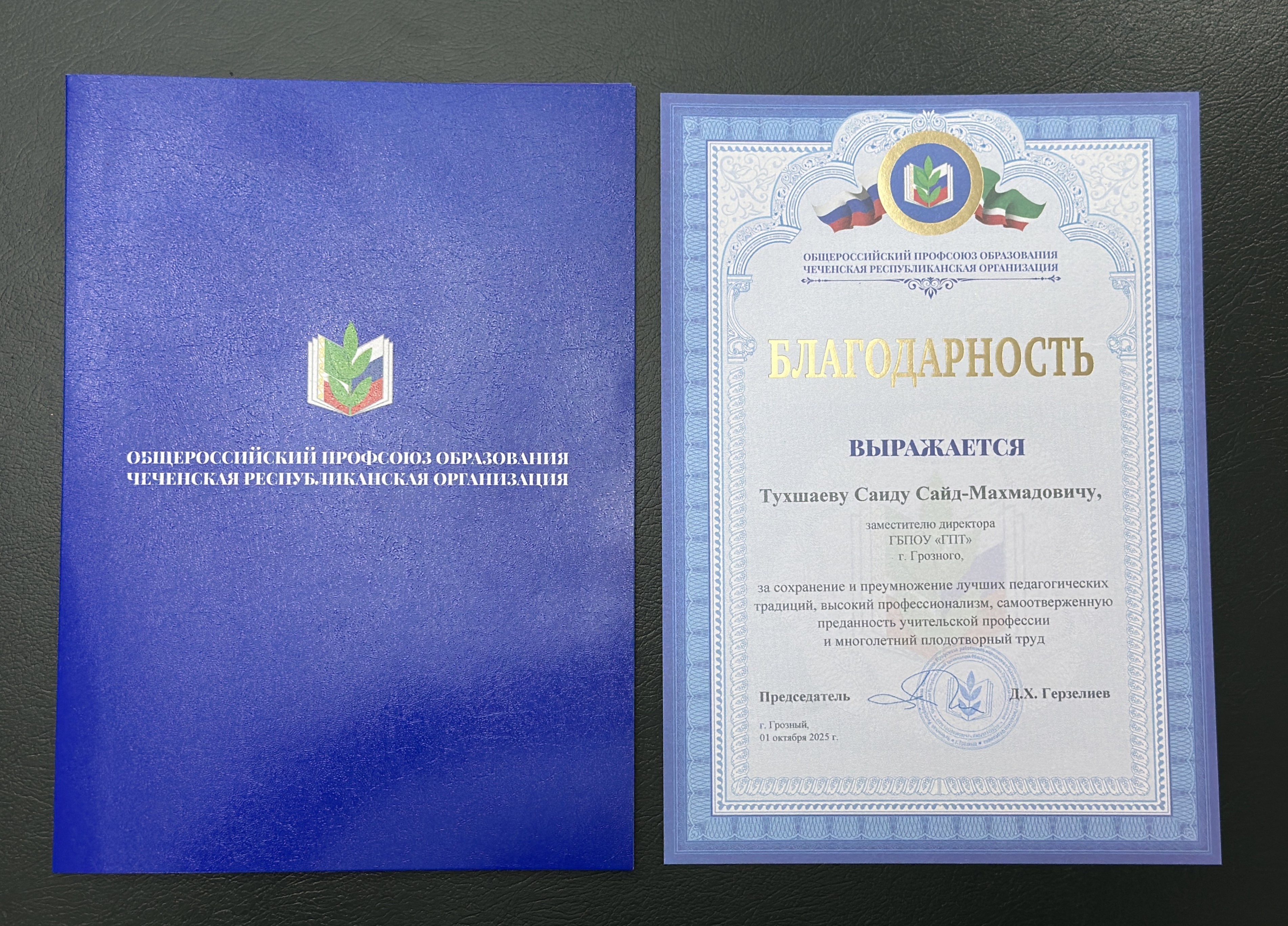 НАЧАЛЬНИК ОТДЕЛА ИКТ ЧГПК САИД ТУХШАЕВ НАГРАЖДЕН БЛАГОДАРСТВЕННЫМ ПИСЬМОМ ПРОФСОЮЗА